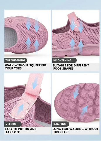The wide toe box offers a comfortable, non-binding fit, and eases pressure on sensitive feet. Stretch breathable mesh upper expand with your foot when you walk, perfect for all seasons and outdoor activities. More comfortable closely fit to help you reduce irritation.